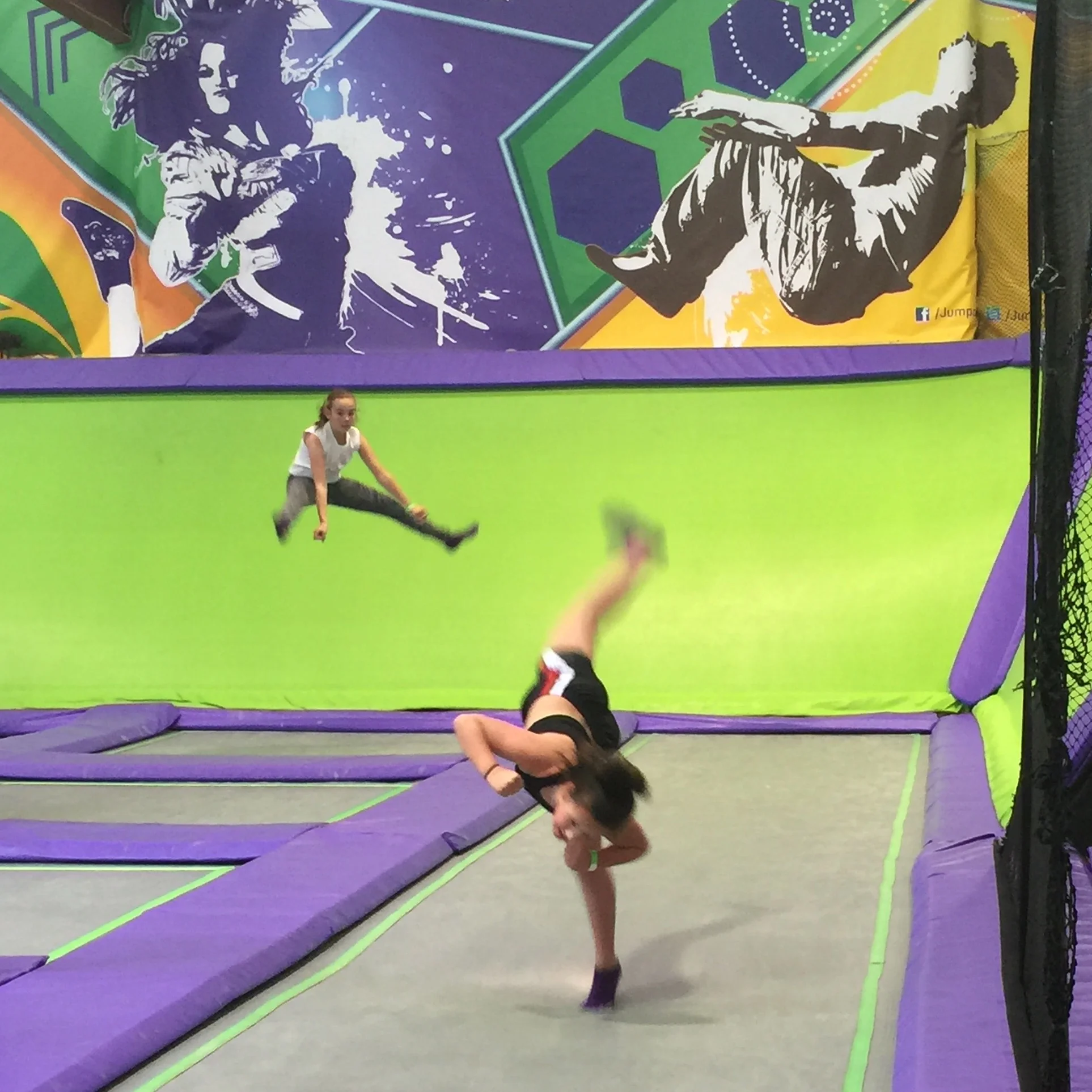 Sushi for lunch then bundled the kids into the car. Off to JUMP – indoor trampolining, and arrived with seconds to spare. After an hour of non-stop bouncing you would think the girls would be tired. How can two 11 year old girls have so much energy and make so much racket!