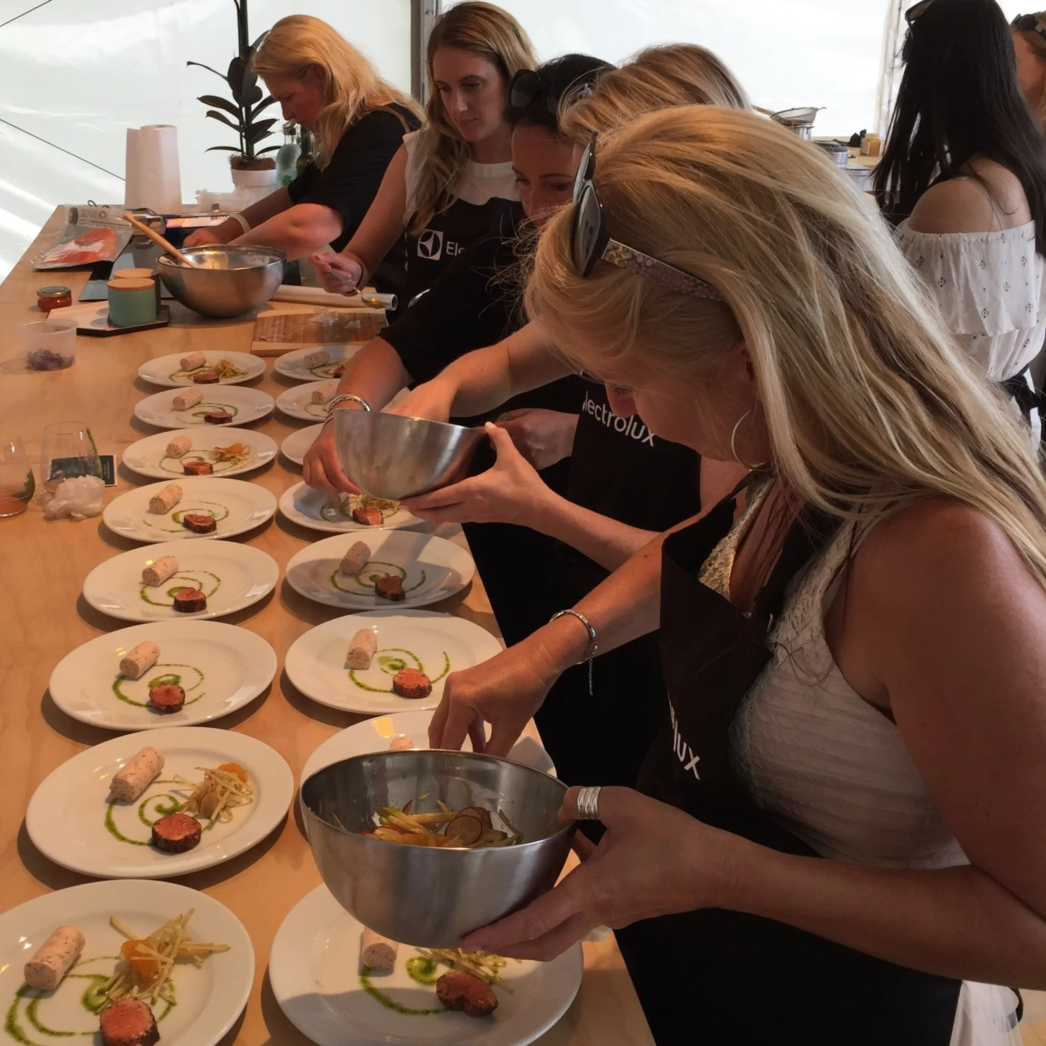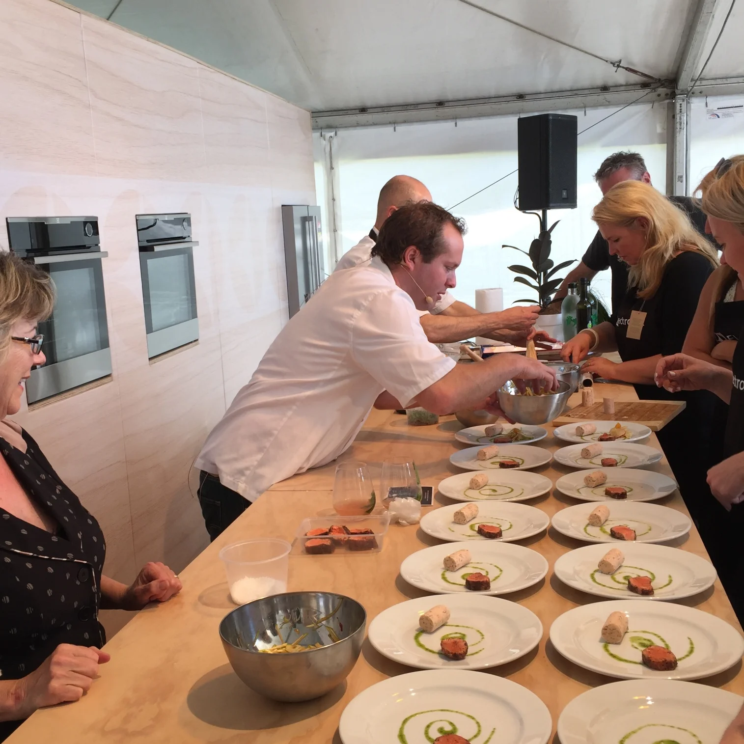 Twenty foodlovers, one chef and some trusty side-kicks cooked up a storm in the Electrolux Chef’s Secrets tent at last week’s Taste of Auckland 2016. Marc Soper from Wharekauhau Lodge shared the recipe for one of his signature dishes – Manuka bark smoked Ora King Salmon, goat’s cheese, gin, local garden fruits and vegetables – for us to recreate.