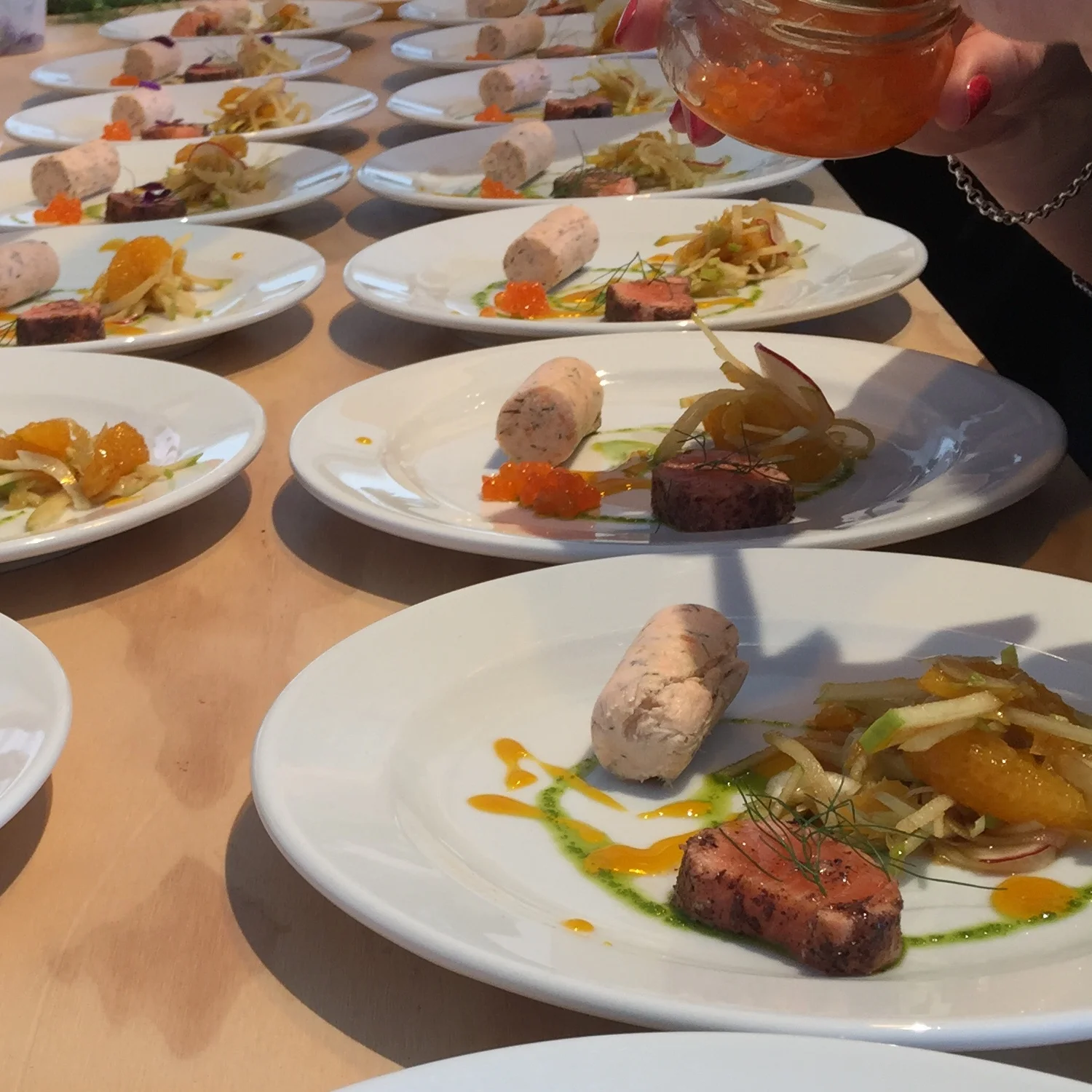Welcomed by Julie Biuso and a punchy, passionfruit vodka cocktail this hands-on class kicked into action. Divided into small groups – knife technique, smoking expertise, presentation and plating skills came to the fore, with the end result looking and tasting pretty impressive.